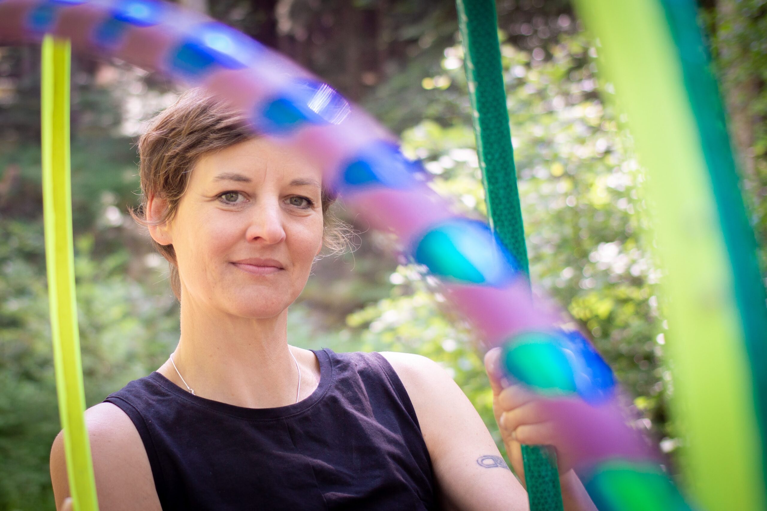 Ich bin Beate, Hoop Dance Trainerin, Begeisterungstalent, Spontanitätswunder und noch so viel mehr.